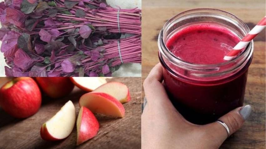 Nước ép rau dền đỏ giúp bổ sung vitamin và khoáng chất cho cơ thể, tăng cường khả năng miễn dịch, chống oxy hóa, làm sạch máu và da. Táo giúp cung cấp chất xơ, giảm cholesterol, ngăn ngừa sự hình thành của mụn và làm trắng da.